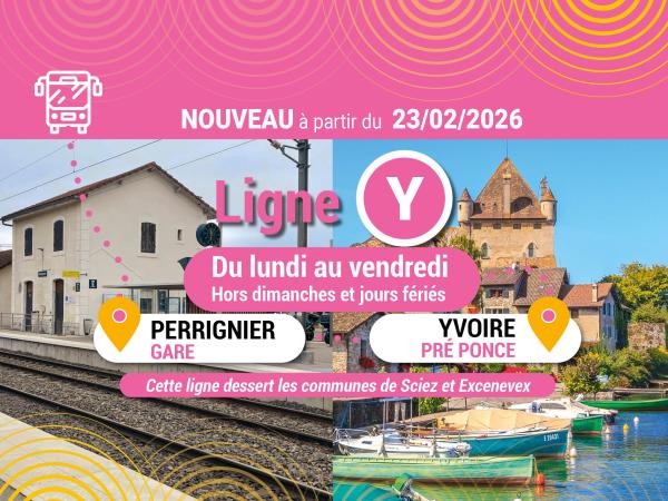 Dès 23 février 2026, empruntez notre nouvelle Ligne Y, du lundi au vendredi pour vous rendre de Perrignier Gare à Yvoire Pré Ponce.